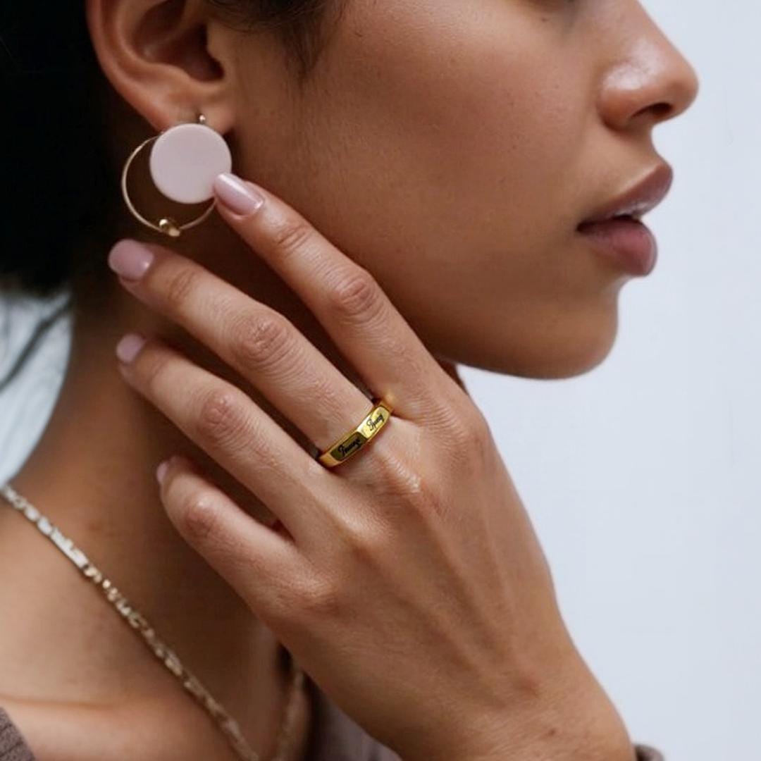 This ring blends retro elegance with warm personalization—ideal for celebrating love, family bonds and unforgettable moments.