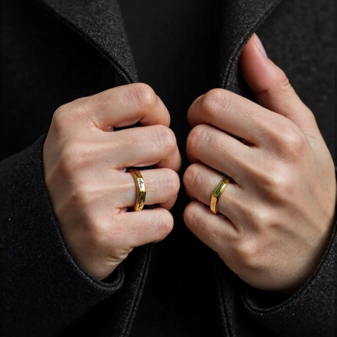 Up to 8 custom engravings (names, dates, words, coordinates)Beautiful vintage-style band with a timeless look