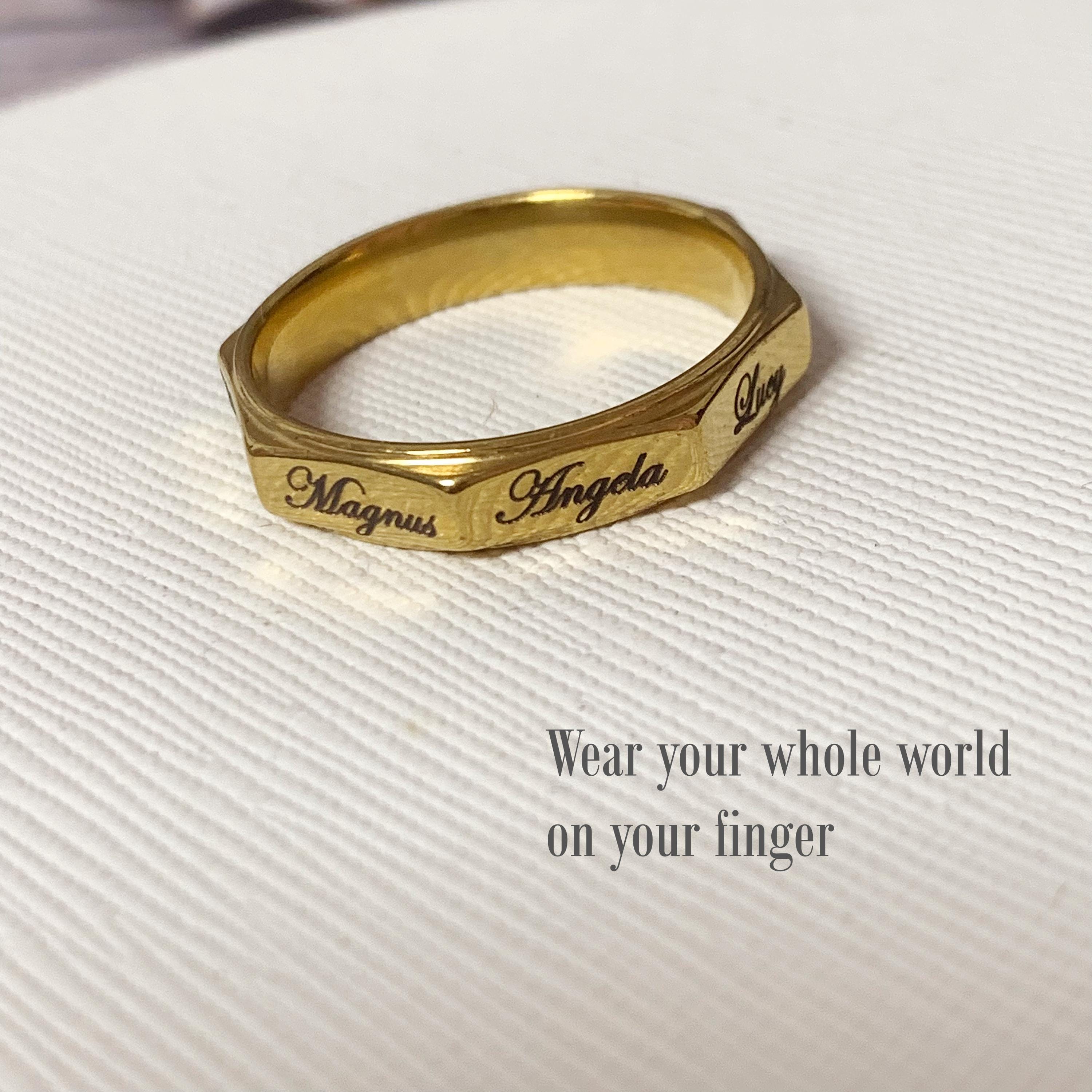 This custom name ring can be engraved with up to 8 names/words max, including meaningful dates, coordinates, initials or family names. A perfect sentimental gift for Thanksgiving, Christmas, birthdays, mothers, grandmothers and close friends.