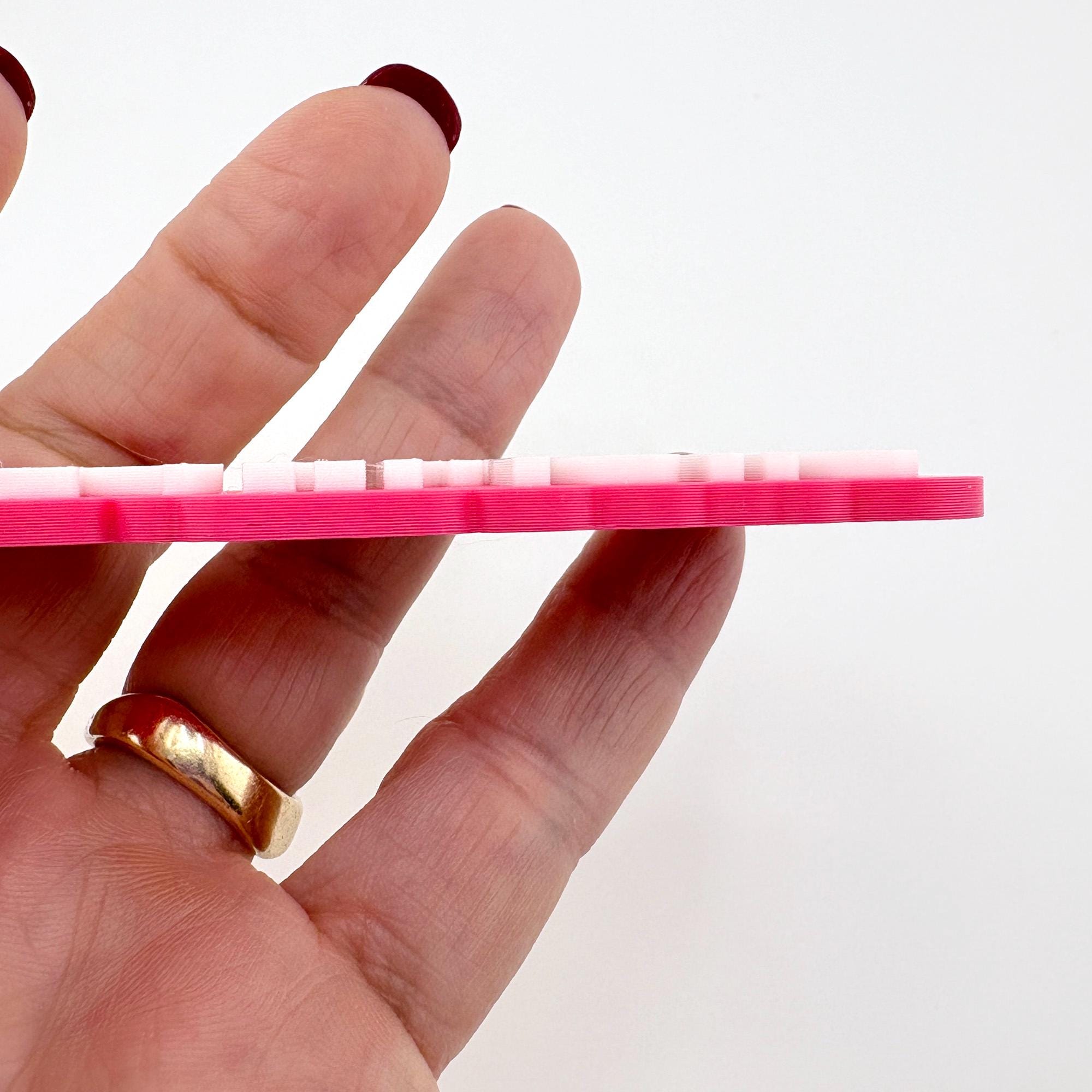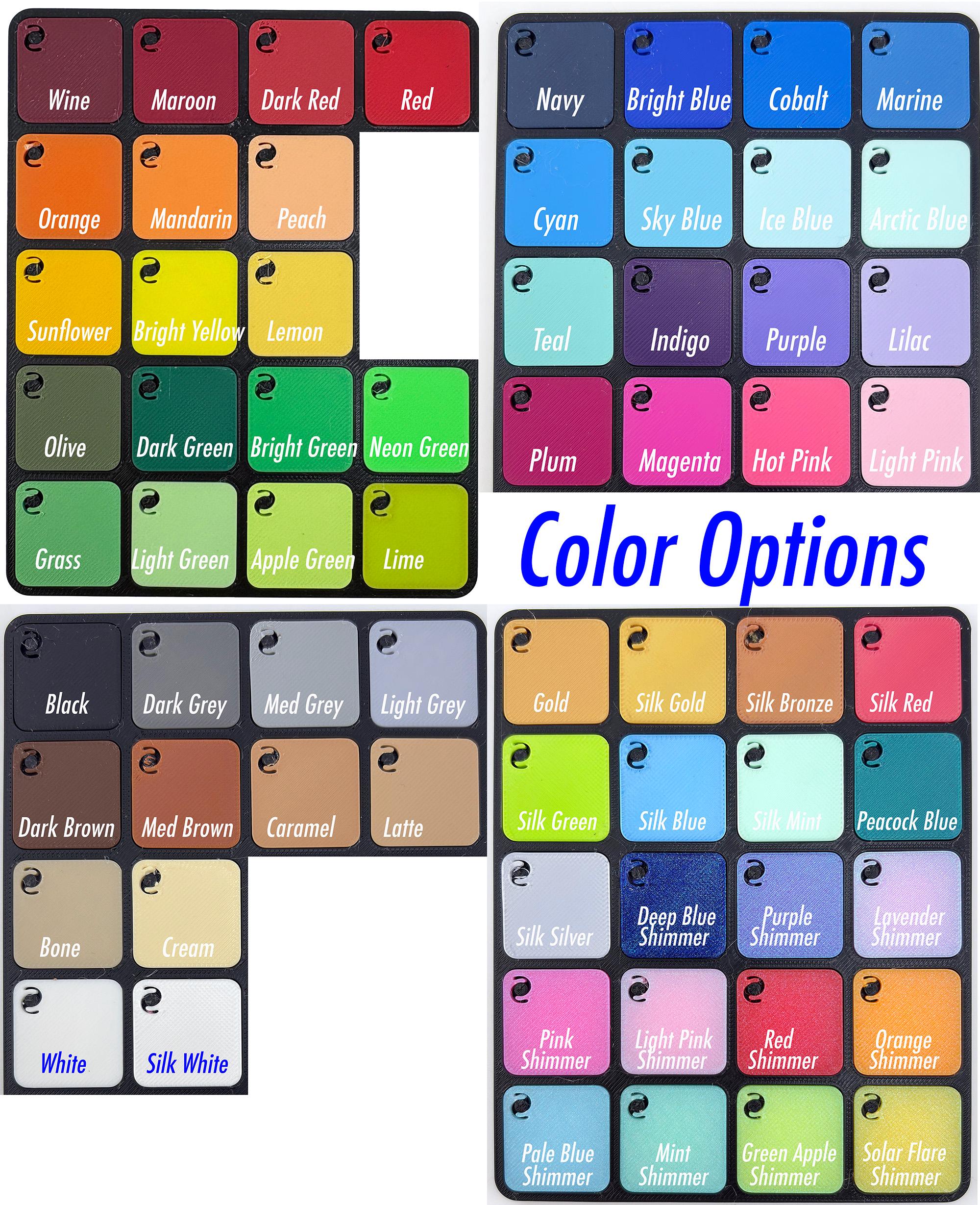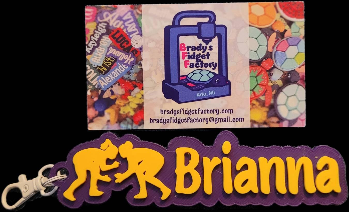 The wrestler nametag measures between 3" and 5" long, depending on font selected and length of name (12 character limit), and .24" (6mm) thick. Height is approximately 1.65" high. Select from 60+ colors for the top and bottom layers. The wrestler icon can be printed in white or in the text color you select. Please note if you have a preference; otherwise we'll use our best judgement. Select from 22 different font styles and eight keychain hardware options. See all colors, fonts and hardware options available in the listing photos.
