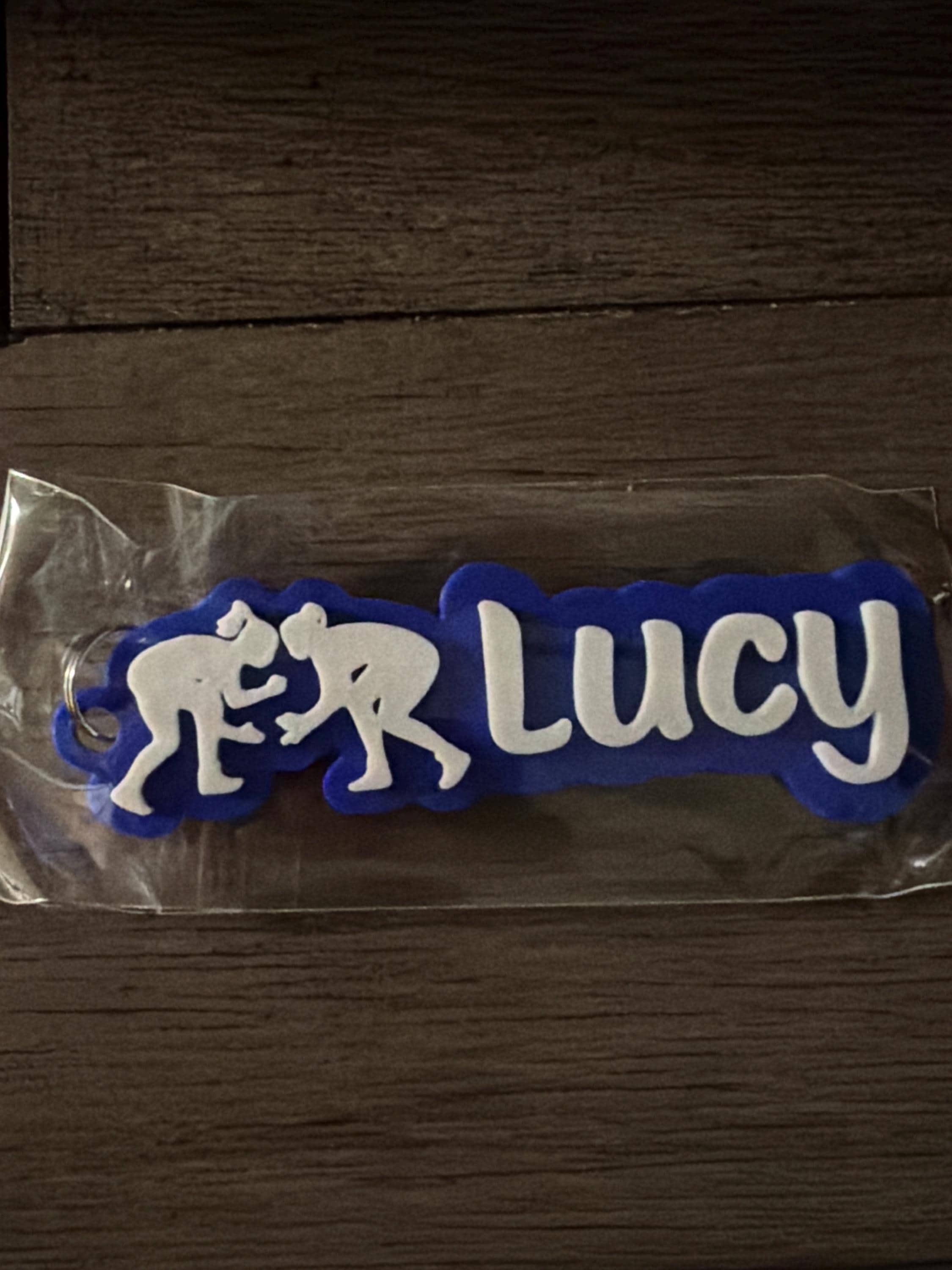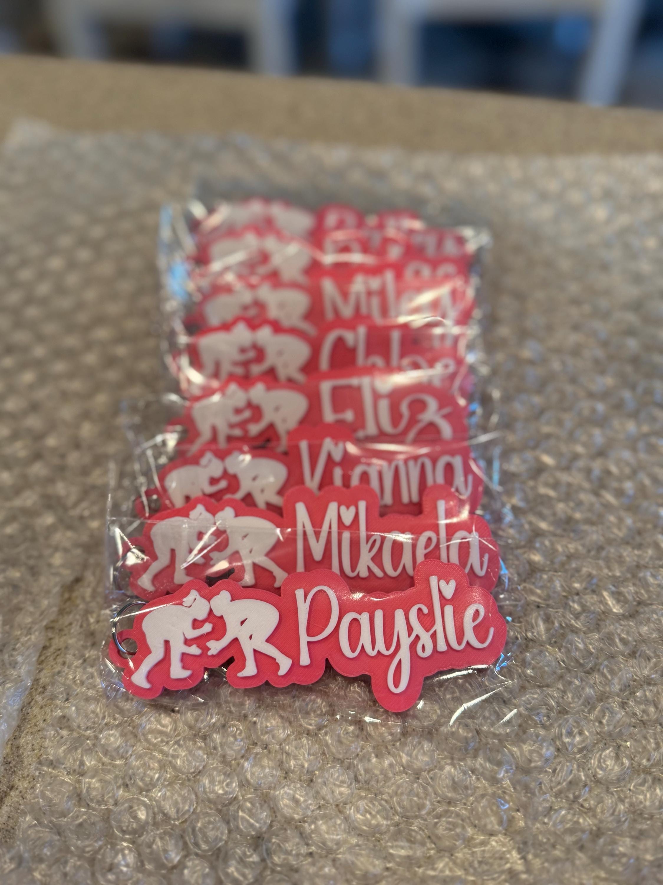 The perfect gift for your female wrestler! Add this personalized keychain to your backpack, sports equipment bag, lunch bag, tumbler, water bottle and more to show your team spirit. The two-color name can be printed in your choice of colors and fonts. Essential for your youth team to identify equipment and personal belongings.